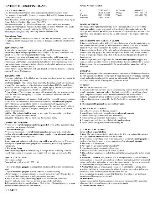 Electronic equipment insurance policy covers range of electronic equipment.